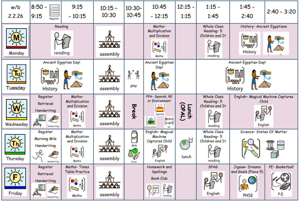 Weekly Timetable- w/b 2nd February