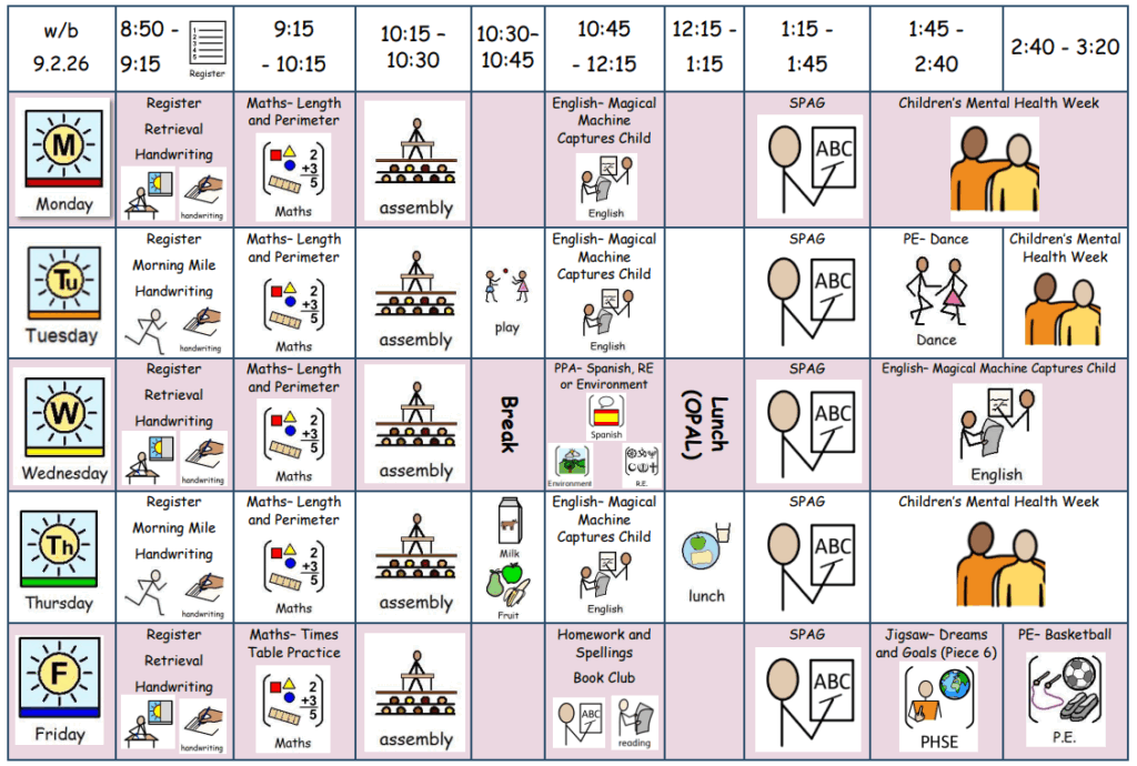 Weekly Timetable- w/b 9th February